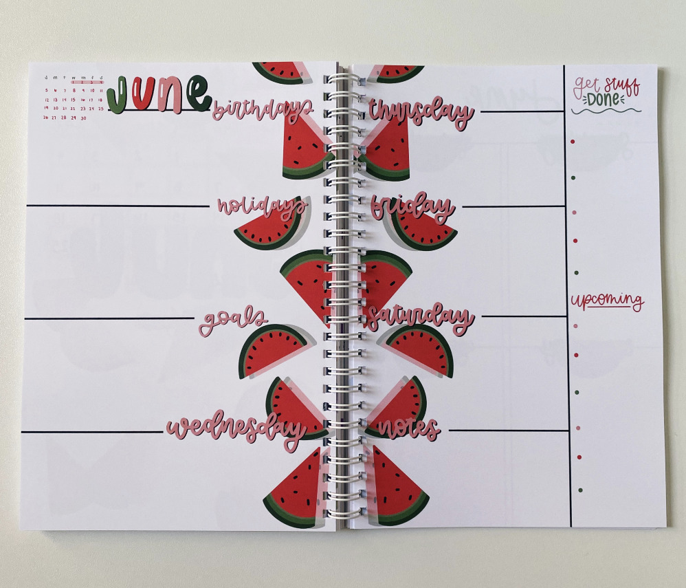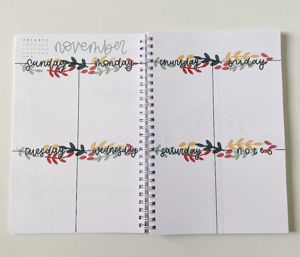 I decided I wanted to create planners again this year, but I wanted them to be more professional. I designed each page uniquely on my iPad and my Uncle helped me put the pages into InDesign and get set up with a printer.